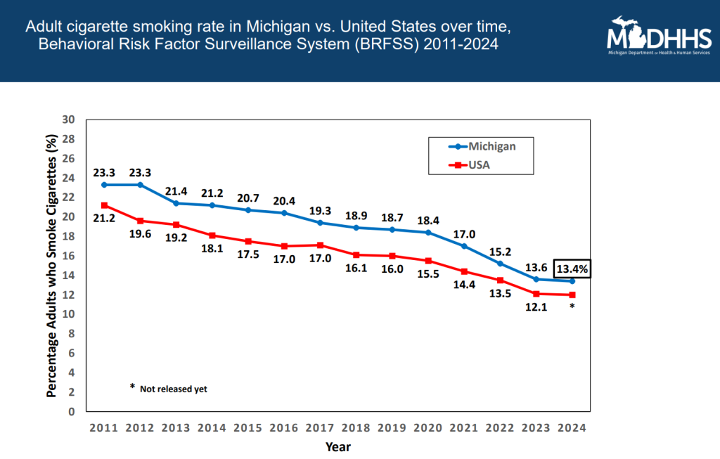 In addition, the number of Michigan smokers has dropped significantly since 2013.