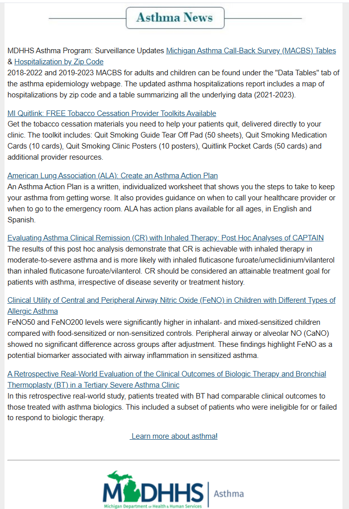 These twice-weekly MDHHS asthma emails duplicate Google, and are probably not as current.